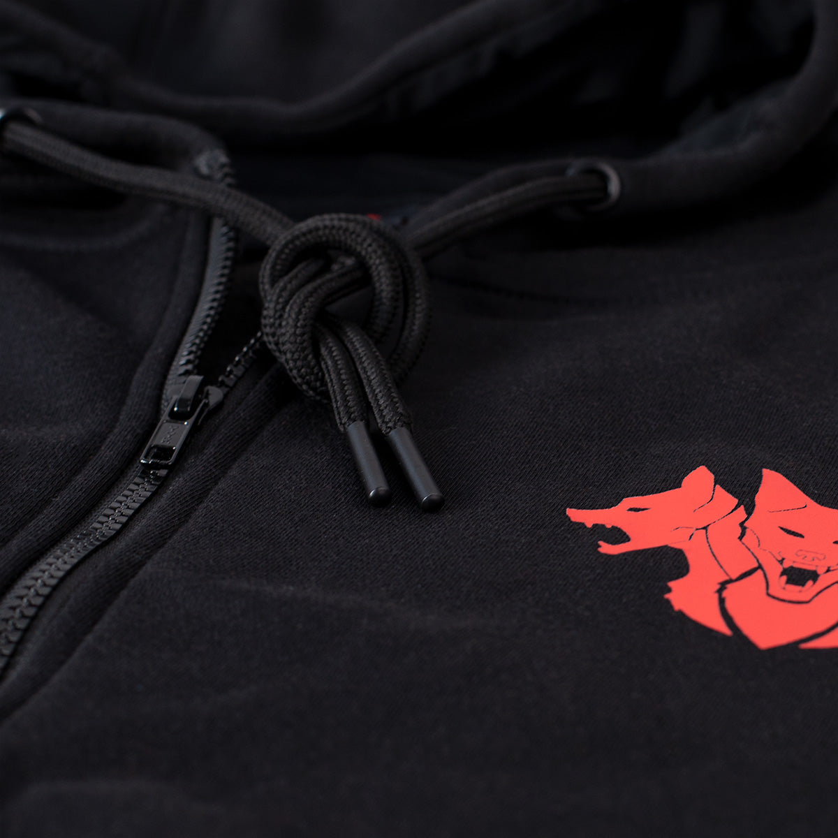 CERBERUS Premium Zip-up Hoodies are made with comfort and function in mind. This full length zipped hoodie has a ribbed hem and cuffs for better fit and a drawstring hood for comfort. Featuring the iconic Cerberus Strength dogs head logo in our instantly recognisable red and black colours. This is the perfect all round hoodie which is both comfortable and durable due to the high cotton count and polyester blend.