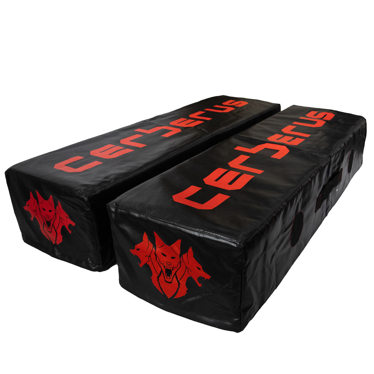 CERBERUS Log Drop Pads are made from a unique high-density foam, which is highly shock absorbent, has low rebound and features great noise reduction. Coupled with extra strength covers for durability, our extra-large ventilation holes on the sides help to prevents rips, splits and bursting with even the heaviest of use. The height and length of these crash pads has been designed specifically for log press. The extra length gives you coverage if you drop the log either in front of you or behind you if something goes wrong when locking out. They also give you a nice pick up height and the textured bottom for added grip prevents the pads moving during use. These really are the PERFECT drop pads for the serious log presser!